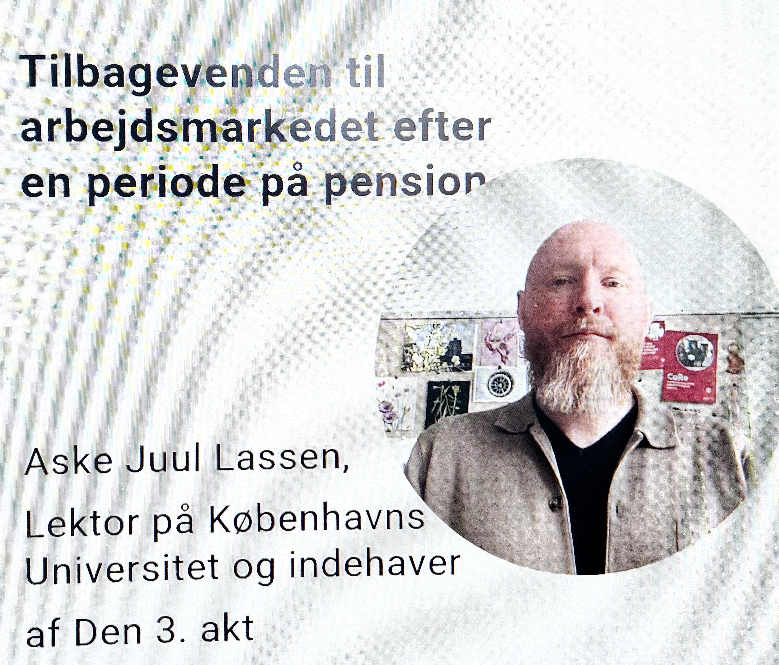 09:05 | Tilbagevenden til arbejdsmarkedet efter en periode på pension, Aske Juul Lassen, Universitetet i København/Den 3.Akt
